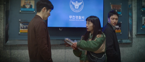 한편, 노상철(고준)은 정금희의 사고 현장에서 증거를 찾으려 노력했어요. 자살로 보기엔 정황이 맞지 않았고, 정금희가 사고 직전에 산 과일도 남아 있었기 때문에, 사고라기보다는 누군가 고의적으로 저지른 일이라고 판단했습니다. 특히, 빗속에서 뛰어가는 수상한 인물이 CCTV에 포착되었는데, 그 사람은 모자를 쓰고 있었죠. 노상철은 마을 사람들 중 한 명이 이 사건과 관련이 있다고 직감했어요.