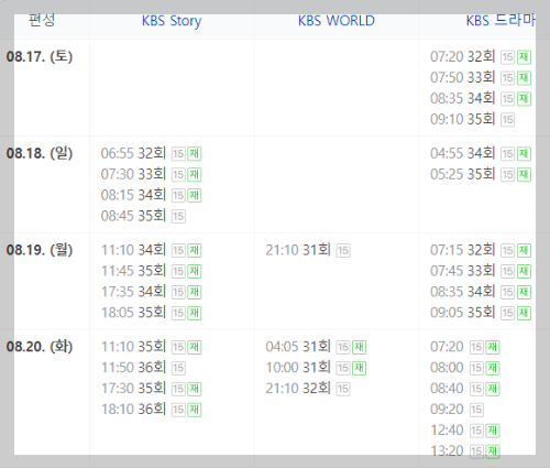 8월 16일 방영된 35회의 재방송은 8월 17일 오전 9시 10분에 KBS 드라마TV에서 방송됩니다.