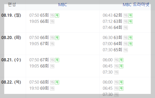 MBC TV 월 - 금요일 저녁 7시 5분 방송